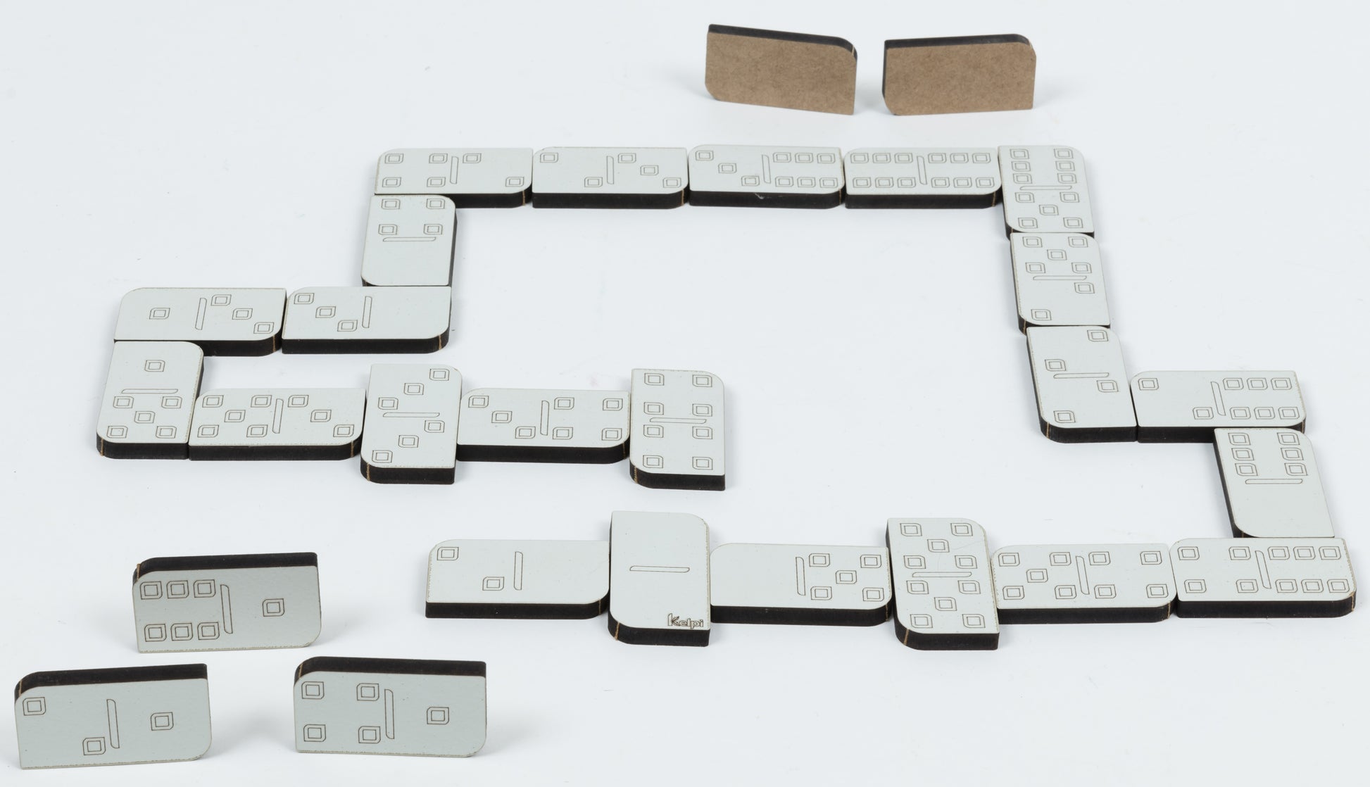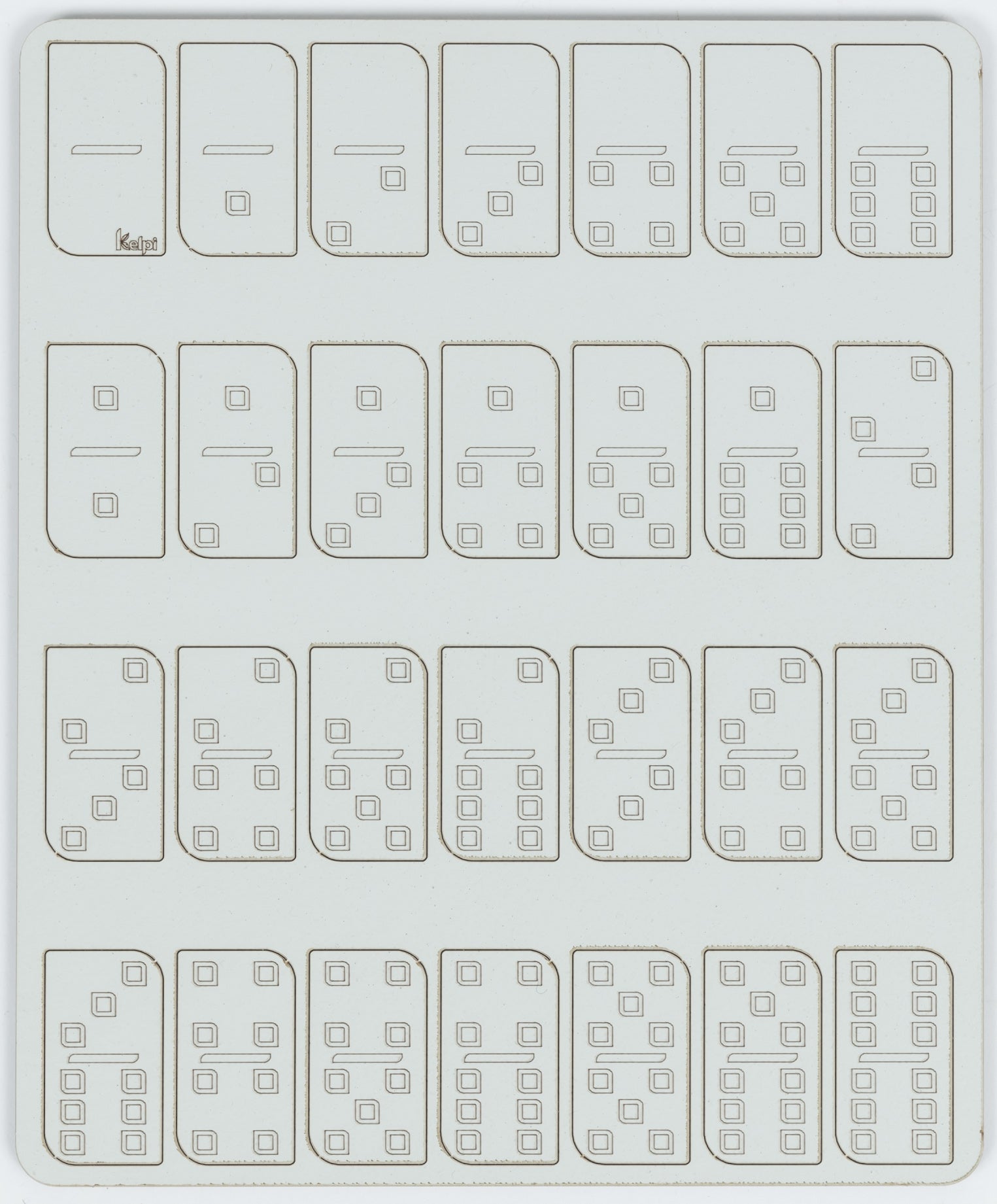 Pièces de domino en bois peint à la main sur une face puis graver et découper au laser. Épaisseur 6 mm. Fabrication française.